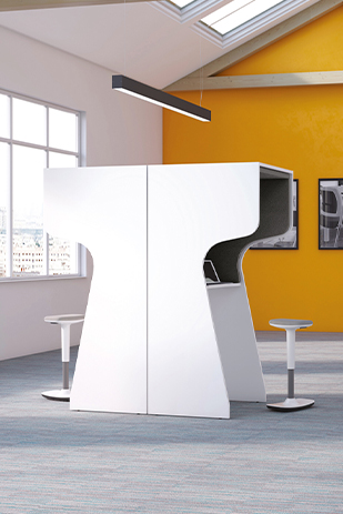 La cabine acoustique KOMUNIKUBE est un produit unique en son genre, avec un design et une fabrication spécifique pour répondre aux besoins croissants de concentration et d'intimité dans les espaces de travail. Elle est fabriquée à partir de matériaux de haute qualité, notamment une structure mélaminée de 25 mm d'épaisseur avec des parois extérieures exploitables. L'assemblage soigné de la box acoustique KOMUNIKUBE, avec des chants invisibles et des angles à 45 degrés, assure une finition professionnelle. La cabine de bureau acoustique KOMUNIKUBE est également réglable en hauteur grâce à des vérins de mise à niveau. Elle est disponible en différentes options, notamment avec ou sans électrification, une finition bicolore pour la banquette et les panneaux acoustiques, et différentes configurations de places (2 ou 4) et d'ouvertures (1 ou 2 côtés).